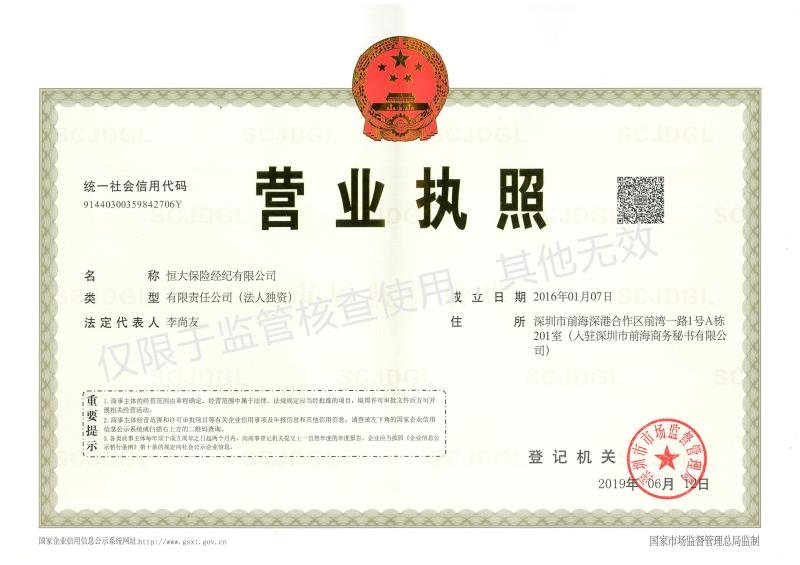 恒大保险经纪有限公司于2016年1月7日在深圳前海注册成立,2016年3月7日获中国银保监会批准开业,为世界500强中国恒大集团旗下全资子公司。现已开设14家省级分公司,拥有一支由5000多专业人员组成的销售和服务队伍。
